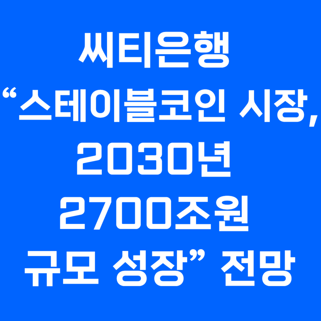 글로벌 금융시장에서 스테이블코인(Stablecoin)이 차세대 금융 인프라로 주목받고 있습니다. 최근 씨티은행은 “2030년까지 스테이블코인 시장이 최대 2700조 원 규모로 성장할 것”이라는 전망을 내놓으며 업계의 관심을 모았습니다.