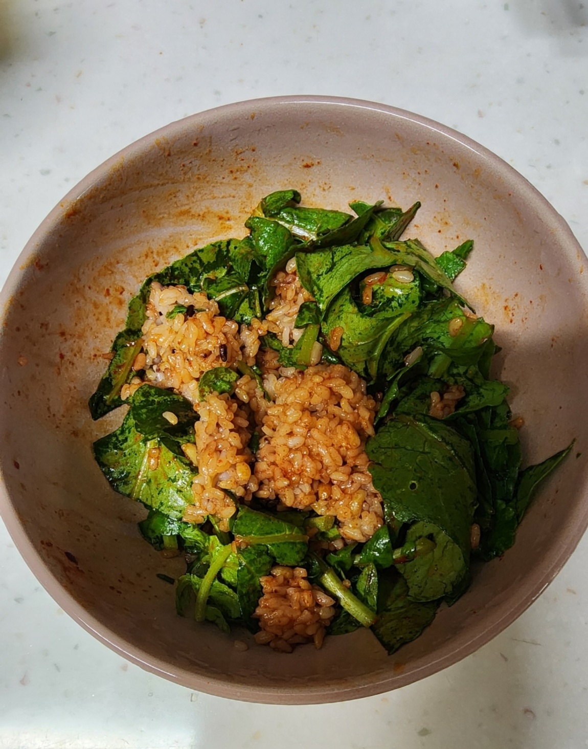 비빔밥을 만들어야 열무가 부드럽고 맛있습니다.