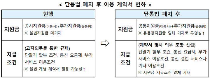 - 이제는 통신사가 "이 요금제는 얼마 지원해요"라고 의무적으로 알릴 필요가 없어져요.