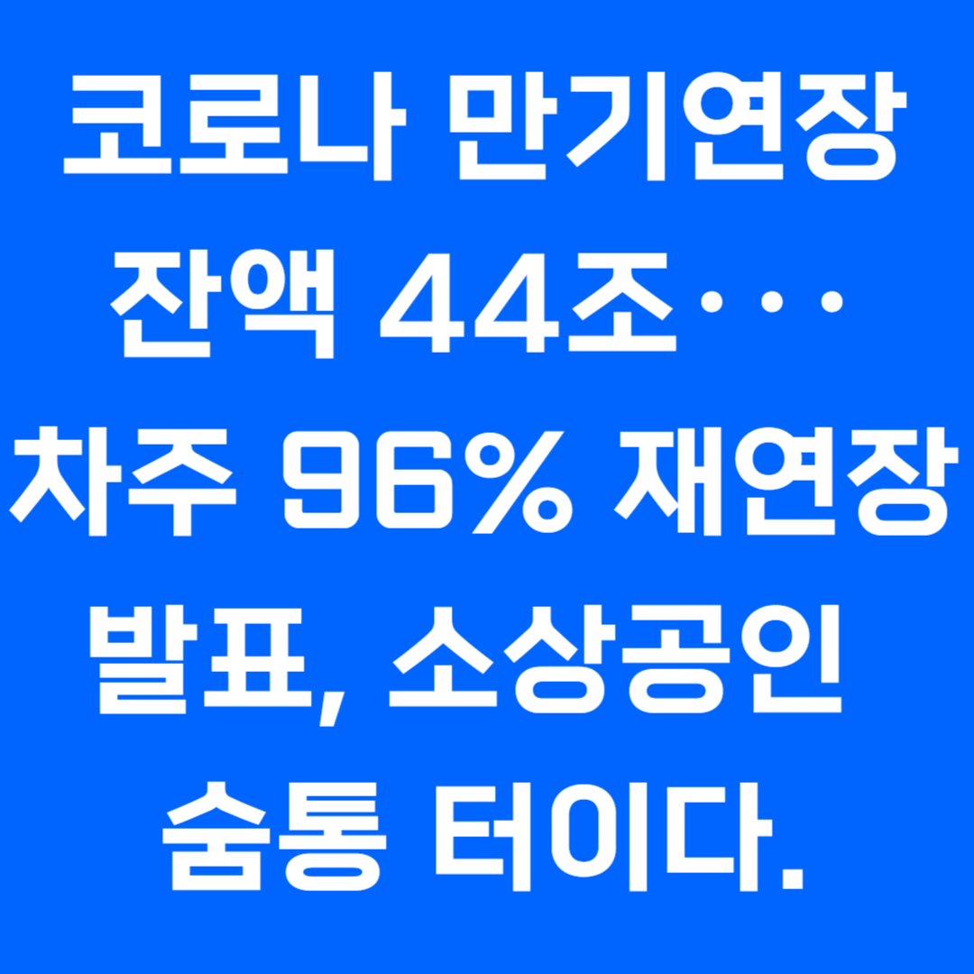 코로나 만기연장 잔액 44조···차주 96% 재연장 발표, 소상공인 숨통 터이다.