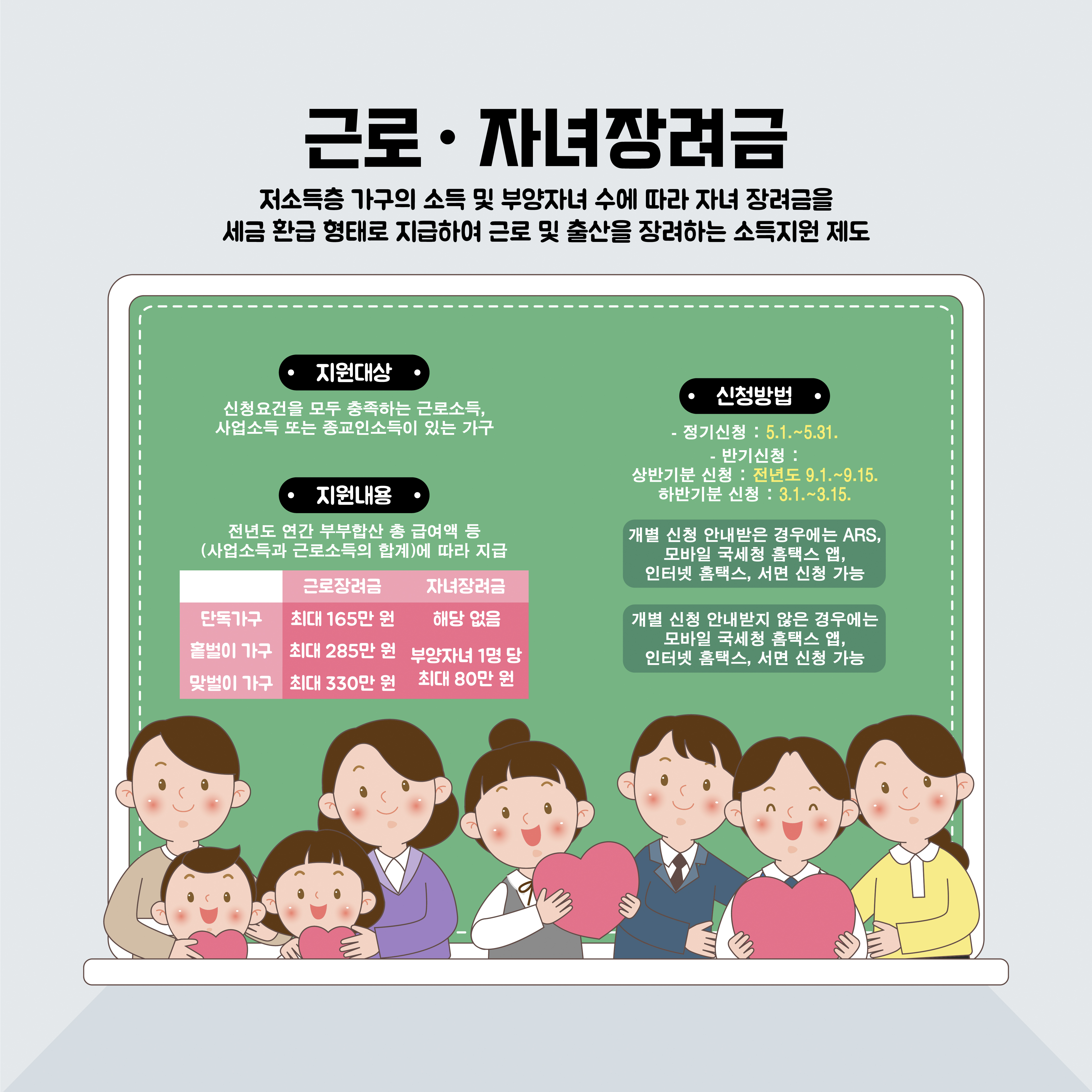꼭! 확인하고 대상이 되시면 신청해서 근로·자녀장려금을 받으시길 바랍니다.