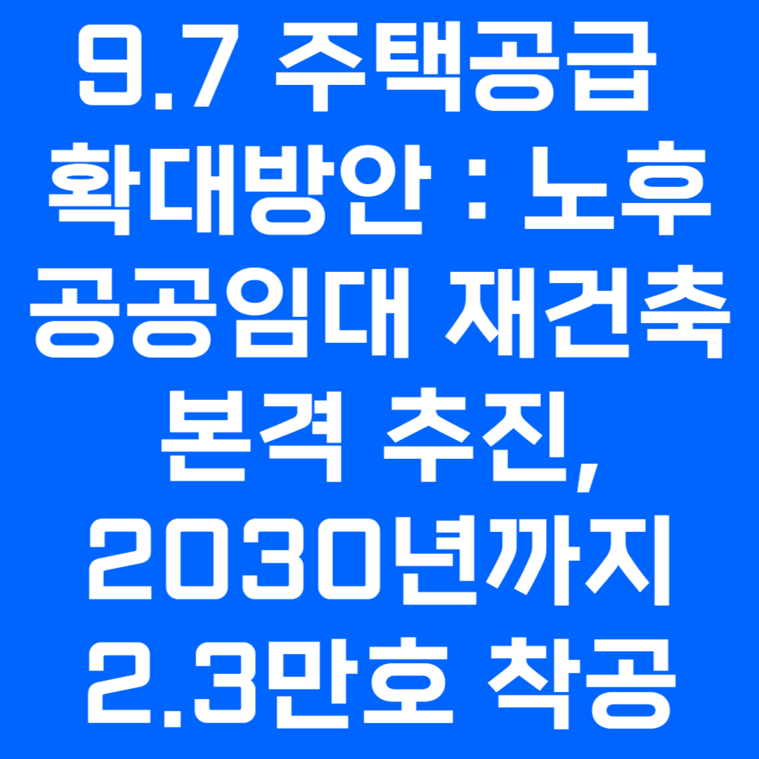 9.7 주택공급 확대방안: 노후 공공임대 재건축 본격 추진, 2030년까지 2.3만호 착공