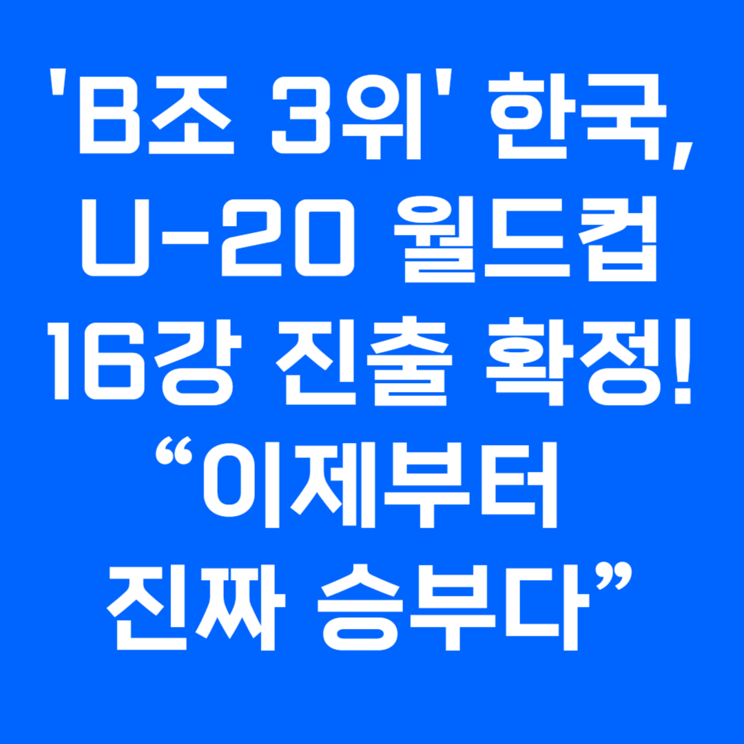 대한민국 U-20 축구대표팀이 2025 FIFA U-20 월드컵에서 조별리그 B조 3위로 16강 진출을 확정했다. 조별리그 경기 결과와 향후 대진, 이창원 감독의 각오까지 정리했다.
